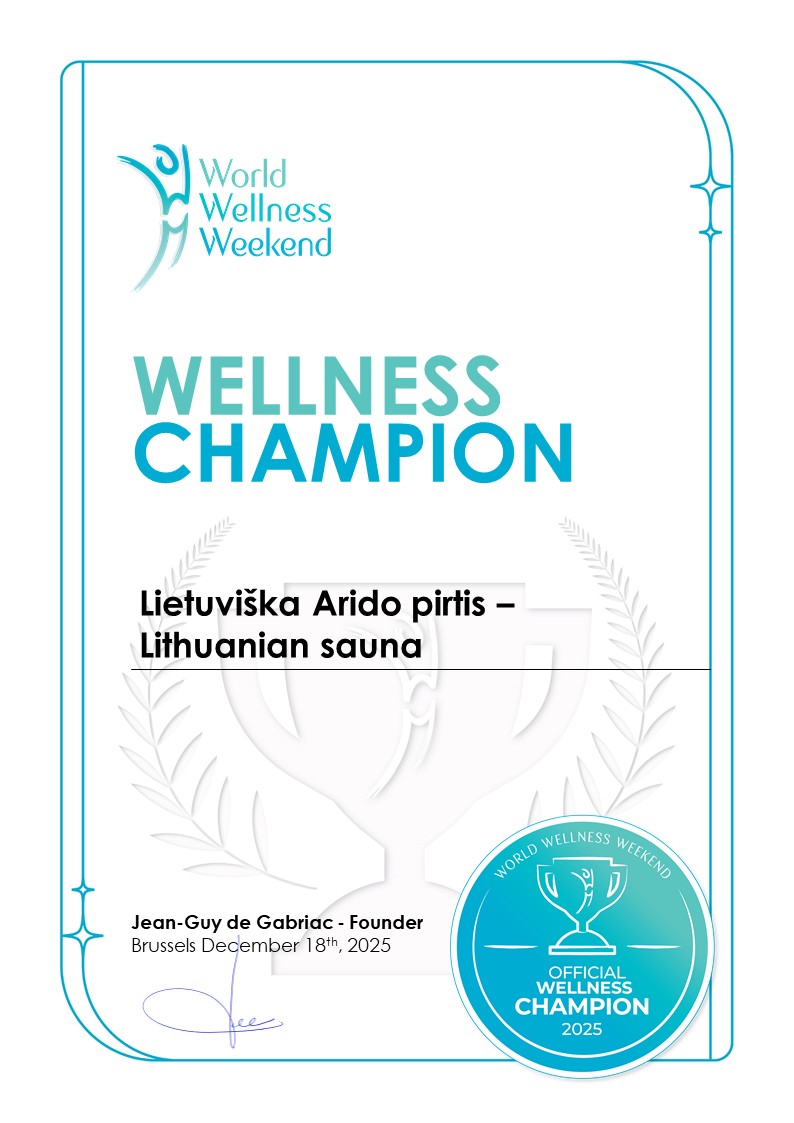 Pirtis tai vieta kur galima pasirūpinti savo sveikata, pabendrauti su draugais ir atšvęsti gimtadienį. Ir visa tai galima daryti be alkoholio. Arido pirtis išsiskiria geru garu kurį duoda periodinio kūrenimo krosnis, kai ugnis tiesiogiai kaitina akmenis. Pirtyje naudojamos vietoje pagamintos kūno priežiūros priemonės: natūralūs šveitikliai iš druskos, kaštono, kavos. Šeimininkas pats gamina augalų vandenį ( hidrolatą) kurį naudoja pirties procedūrų metu. Jūs galite užsakyti masažą vantomis, kūno priežiūros procedūras su aliejais ir medumi. Šokolado kaukė suteikia išskirtinį malonumą jūsų veido odai. Priimamos nedidelės, iki 8 žmonių, grupės ir pavieniai asmenys. Pirtis yra vos 12 km nuo Vilniaus miesto centro.